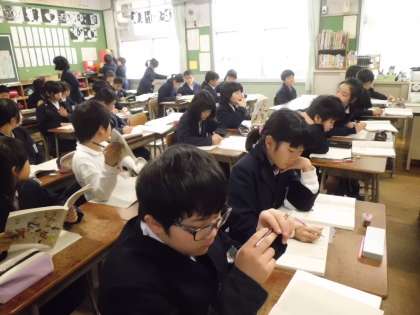 2月17日(金)国語の授業で「六年生におくる字をすいせんしよう」という学習をしています。卒業が間近になってきました。