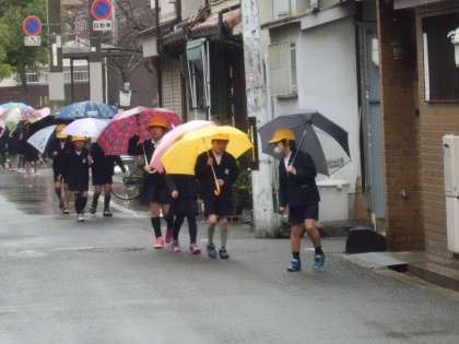 1月30日(木)、あいにくの雨でしたが、2年生が町たんけんに行きました。桃谷駅から自分で切符を買って環状線に乗り、寺田町駅からは通学路を通って学校まで帰っている様子です。