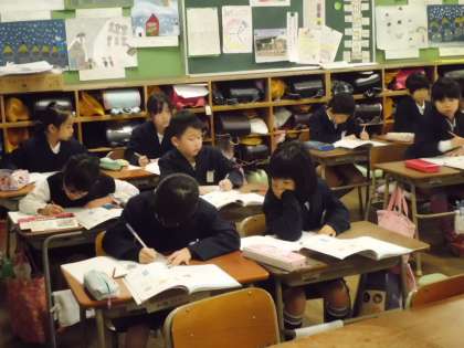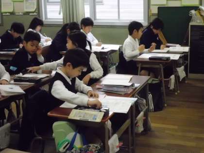 2月20日(月)3時限目、2年算数科学習の様子です。今日は、「分けた大きさのあらわし方をしらべよう」という分数の基礎になる学習でした。正方形の折り紙を半分にする活動を通して、学習を深めました。