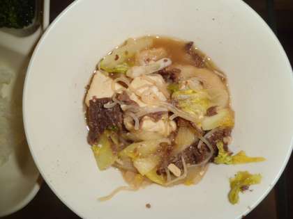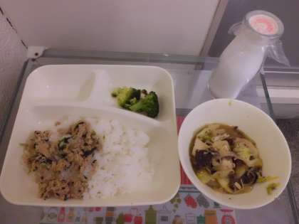 2月22日(水)今日の給食はすき焼き煮、ブロッコリーのしょうゆがけ、ツナっ葉いため、ご飯、牛乳です。ツナっ葉いためはツナ、大根の葉を炒めて味付けしたものでご飯にかけてたべます。