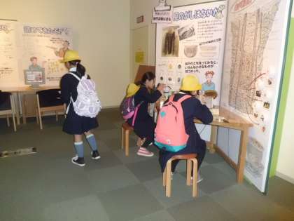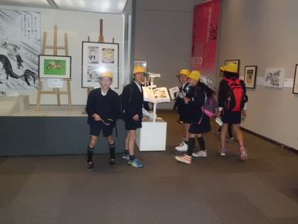 大阪歴史博物館では、8班に分かれて見学しました。ここでも熱心にメモをとりながら見学していました。途中でパズルをしたり、指導員の方と双六をしたり、楽しい時間を過ごすことができました。特別展示室では、手塚治虫などのまんが家の原画やまんが本を見て、楽しむことができました。