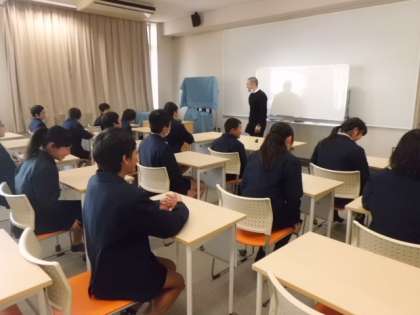 2月27日(月)5時限目、6年勝山中学校見学会の様子です。英語科と理科の体験授業を受け、校内の見学をしました。少し、中学生気分を味わうことができました。