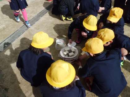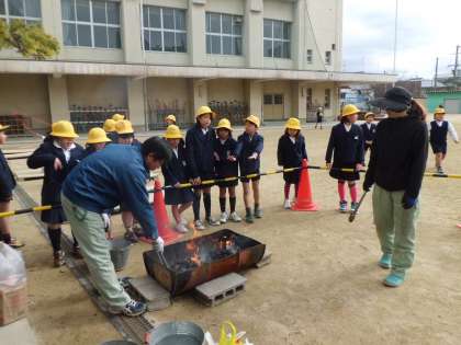 2月4日(火)の5時限目に、3年生が社会科の学習で、七輪を使いました。管理作業員さんが炭火をおこしてくださり、七輪でおもちを焼きました。ふっくらとしたおもちは格別で、楽しい学習となりました。