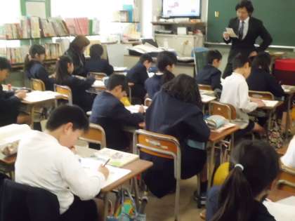3月10日(金)3年社会科の学習の様子です。映像に写しながら学習をすすめています。