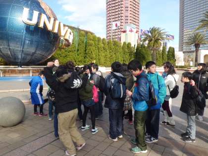 2月4日(火)学級休業のため延期になった卒業遠足に行きました。出発する時はとても暖かかったですが、ユニバーサルスタジオにつくと曇ってきて、急に寒くなりました。日中は曇り空から青空が見えていい天気でした。子どもたちはグループごとにパーク内をまわり、10時から15時まで思いっきり楽しむことができました。