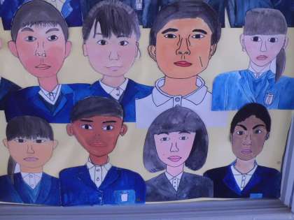 3月16日(木)玄関入って右手の掲示板に6年生の似顔絵が掲示されています。自分の顔をよく見て描いています。来校された時にご覧ください。