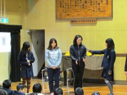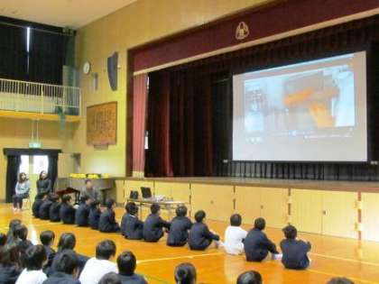 その次に、学校で給食を作っている様子をビデオで見ながら、