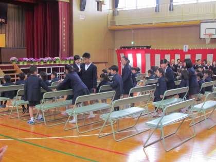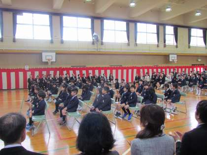 4月7日(金)午前10時より入学式を行いました。昨夜からの雨で運動場はぬかるんでいましたが、入学式の時間は雨も降らず新1年生を迎えることができました。子どもたちにとっては長く感じた入学式だったと思いますが、静かに話を聞き、2年生の新入生を迎える演技も真剣に見ていました。来週4月10日(月)には始業式のあとに2年生から6年生までの児童と対面式を行います。いよいよ本格的に学校生活が始まります。