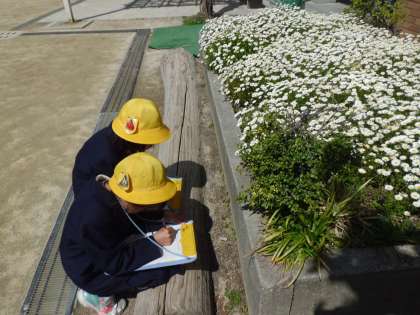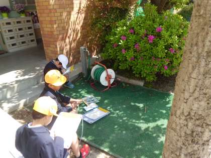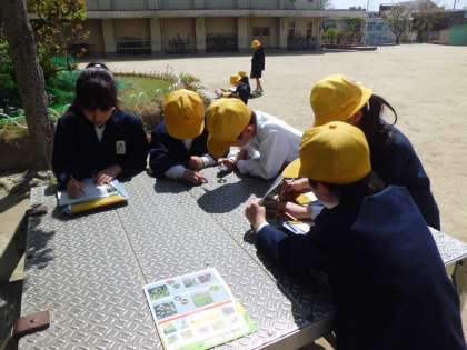 4月18日(水)3年理科学習の様子です。天気がとてもよく、外での学習がしやすいです。