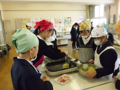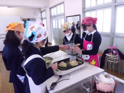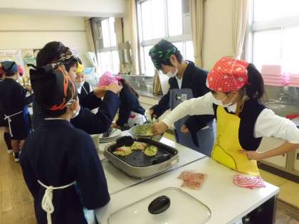 2月13日(木)5年生が調理実習で「お好み焼き」を作りました。野菜をきざみ、粉をといて、それはもう、子どもたちの笑顔、笑顔、笑顔。おいしいお好み焼きがたくさんできました。