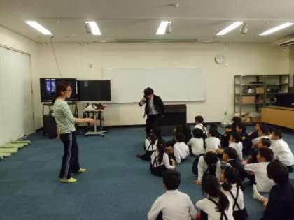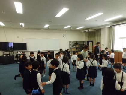 各学年の学習の様子です。1年生は、合同で音楽をしました。音楽に合わせて体で表現していました。かわいい象のおさんぽです。
