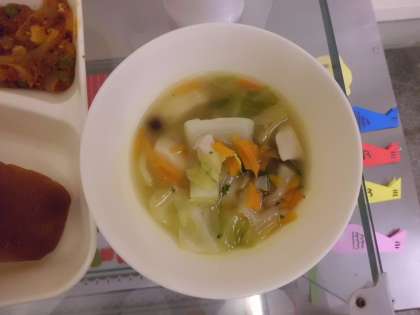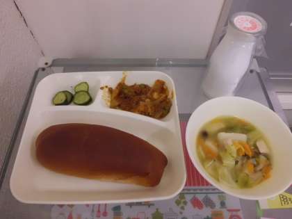 5月15日(月)の給食はじゃがいものミートグラタン、スープ煮、きゅうりのバジル風味サラダ、パン、牛乳です。