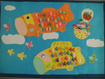 5月16日(火)玄関入って右側の掲示板にはなかよし学級の子どもたちがつくった作品が掲示されています。一人一人頑張ってつくりました。