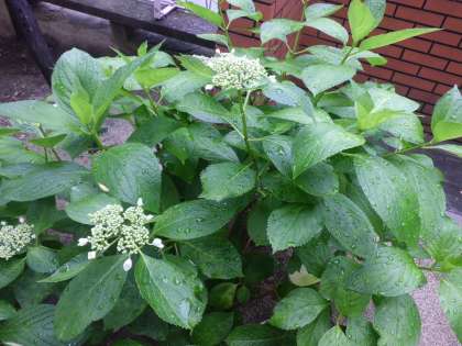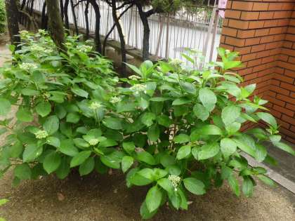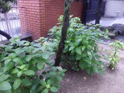 玄関入ってすぐ右手のアジサイの花芽が膨らんできました。梅雨時に開花しそうです。ガクアジサイです。