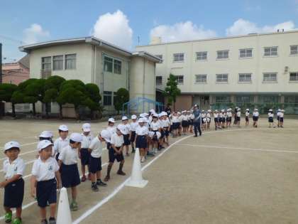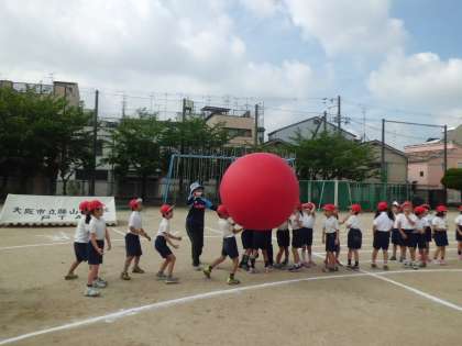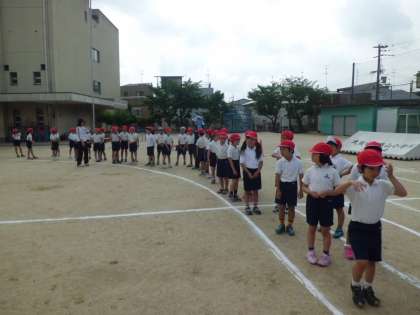5月26日(金)の1時限目に昨日延期になった全体練習を行いました。今日は大玉運びと応援合戦の練習です。大玉運びは大きな玉ですので、低学年の子どもたちにとってはあつかいにくく、教員が補助して行います。当日が楽しみです。