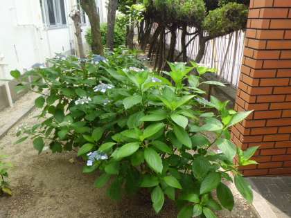 6月2日(金)玄関を入ってすぐ右手にアジサイが咲いています。ガクアジサイです。植物は毎年決まった頃に花を咲かせます。アジサイが咲き出すと梅雨入りも間近です。