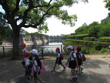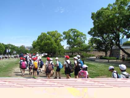 6月9日(金)縦割り班20班で行く全校遠足を実施しました。3年サイクルで今年は大阪城公園です。(来年は長居公園)絶好の天候にめぐまれ、グループにわかれて各ポイントを回りながらゲームを楽しみます。12時にスタート・ゴール地点の西の丸庭園に集合する遠足です。大阪城というエリアだけですが、地図を頼りにポイントをまわっていくので、歩く距離も少し増します。楽しい遠足を行うことができました。