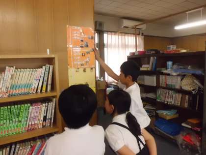 6月14日(水)昼の休み時間に図書委員会による図書館開放がありました。1階では児童による読み聞かせをしていました。