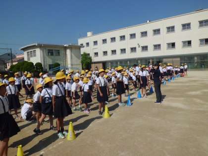 6月15日(木)児童集会の様子です。今日は縦割り班20班、二人一組になって、体操用輪(フープ)を使ってのリレーです。二人の息をあわせて頑張って走り、楽しい時間をすごすことができました。