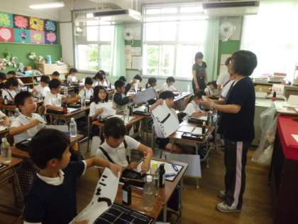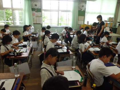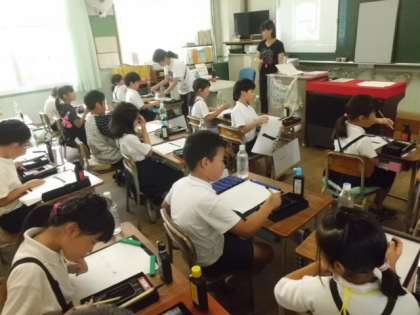 3年習字の学習の様子です。墨をふくました筆で字を書くのは難しいものですが、頑張って練習しています。