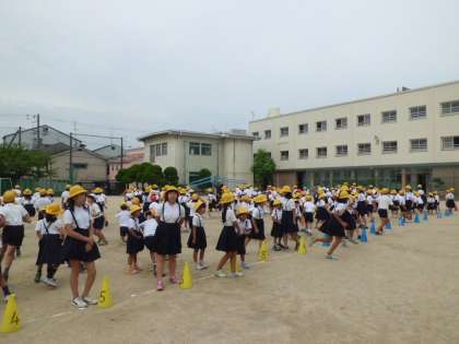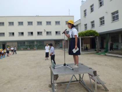 6月22日(木)朝の児童集会の様子です。今日は集会委員会からの宝探しゲームです。運動場のあちこちに色紙に書かれた数字が隠されています。100点、50点、中にはマイナス100点などもあります。大勢で探しますので、なかなか見つからないこともあります。