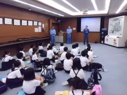 ごみの処理施設の見学に行きました。初めに、DVDでごみ処理について学習しました。