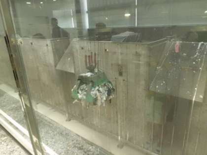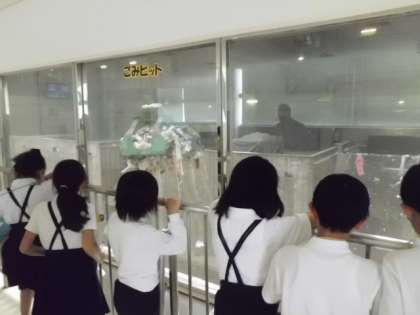 ごみピットも見学しました。大きなクレーンでごみを炉に運びます。クレーンについているごみをつかむためのツメは子どもの背丈ほどもあります。ごみをつかんで動く様子は迫力満点です。