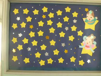 玄関の右側の掲示板には「星に願いを」6年生の願い事が書かれています。もうすぐ七夕です。書くとするなら、皆さんはどんな願い事をしますか?