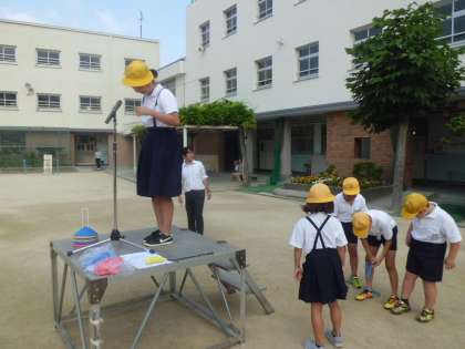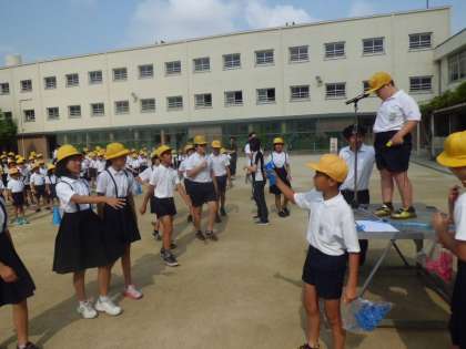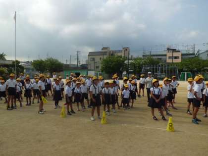 7月13日(木)木曜日の朝は毎週児童集会があります。今日は3人4脚です。2人3脚でもむずかしいですが、なかなかうまく足が動きません。スズランテープで結び目がすぐにはずれてしまい、直すのにも一苦労でした。でも子どもたちはグループで協力しながら、楽しむことができました。