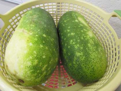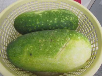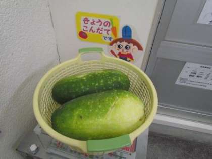 大きな冬瓜です。今日の給食のみそ汁に入ります。