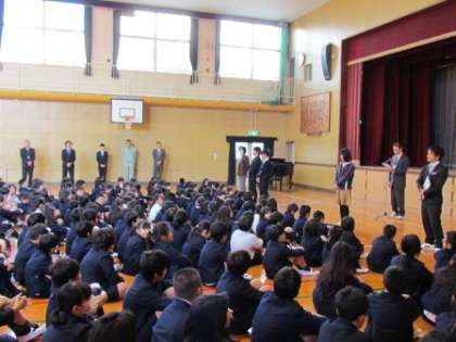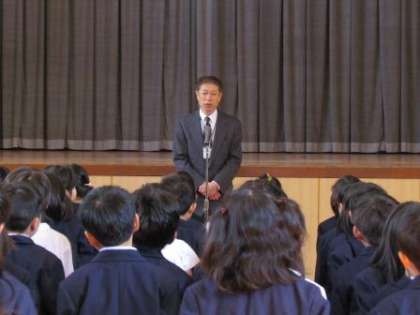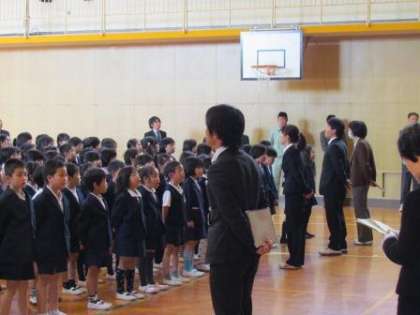 平成26年度、1学期始業式を行いました。新学年になった自覚、高学年のリーダーシップ、今年1年の目標をしっかりと持つなど、学校長からの話がありました。その後、各学級担任の発表があり、子どもたちは自分のクラスの担任はだれになるのか、真剣に聞いていました。最後に全員で大きな声でしかも美しい声で校歌を歌うことができました。