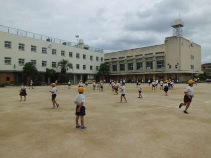 9月1日(金)玄関の寒暖計で朝の気温(7時30分)が25度でした。少し前は30度近くありましたが、大陸の高気圧が張り出してきているせいか、涼しく感じます。日中はかなり気温があがってきています。その中子どもたちは元気に運動場で遊んでいます。