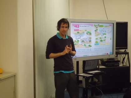 4月10日(木)4時限目に6年生の外国語活動の学習がありました。外国人英語講師City‐Native English Teacher 略してC−NET(シーネット)の方にきてもらい、担任とともに授業をします。5・6年生に1学期10時間ずつ入ります。(2・3学期は未定)外国人講師の方は昨年度と同じでカナダ出身のブレッド ヒンチバーガー先生です。電子黒板を使っての英語の勉強です。子どもたちは集中して学習していました。
