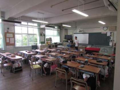 9月5日(火)11時より大阪880万人訓練と連動しての地震による避難訓練を実施しました。実際に大きな地震がきても同じように自分の身を守り、避難できるように年3回行っています。地震はいつ起こるかわかりません。日ごろよりの備えが大切です。ご家庭におかれましても、どのように避難していくのか、話し合っていただければと思います。