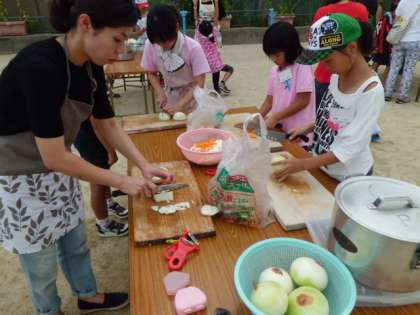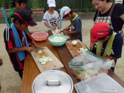 夕食の準備です。みんなでカレーを作ります。うまくできるかな。