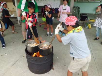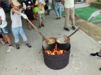 カレーの具材も鍋に入れ、ぐつぐつ煮込んで、おいしくなあれと願いを込めてかきまぜます。