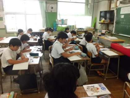 9月12日(火)6年算数の授業の様子です。クラスを二つにわかて、2教室で学習しています。