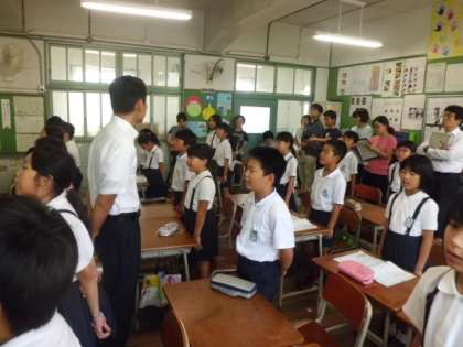 昨日の9月13日(水)に4年で音楽の研究授業を行いました。音楽科には歌唱、器楽、音楽づくり、鑑賞と4つの学習があります。今回は鑑賞です。ICT機器を使用しながら、楽しく学習することができました。