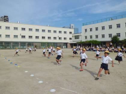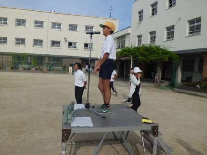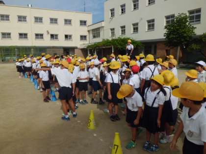 9月14日(木)今日の児童集会は20の縦割り班対抗のぐるぐるリレーです。スタートして、前方のポイントをぐるぐるとまわってもどってくるというリレーです。他のチームに負けないよう、頑張って走っていました。最後にあいさつ週間の登校時、元気にあいさつができた児童の表彰がありました。