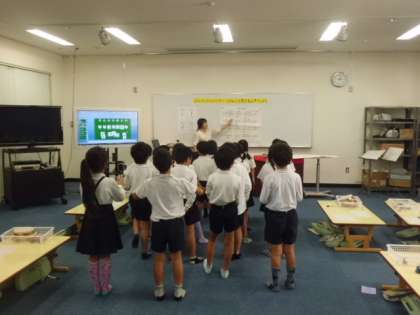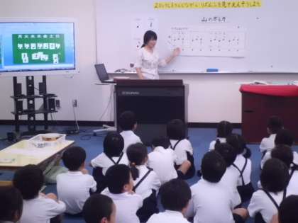 10月11日(水)に2年生の研究授業を行いました。「ひょうしをかんじてリズムをうとう」という学習です。カスタネットやタンブリンを使ってペアで8分音符や8分休符を意識しながら、リズム打ちをしました。楽しく音楽活動を行うことができました。
