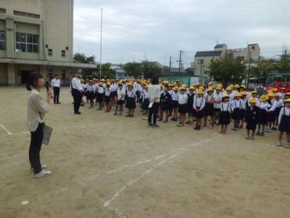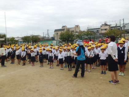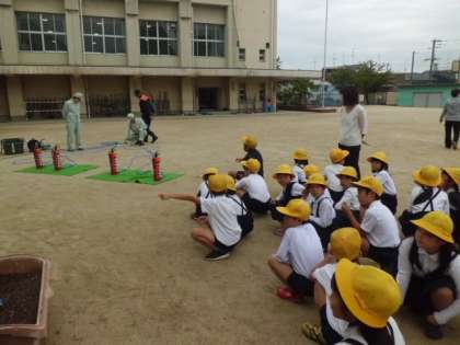 10月14日(土)学習参観のあとは、防災訓練です。1・2年、3・4年、5・6年の3グループにわかれて、水消火器・煙体験、バケツリレー、応急処置体験を行いました。災害がおこった時に冷静に行動できるよう、日頃からの備えが大切になってきます。防災に対する意識を高く持つようにしたいです。