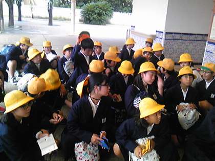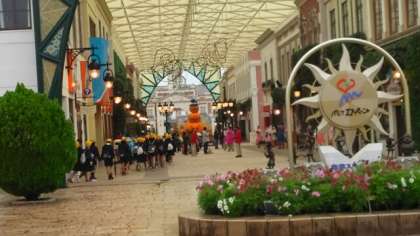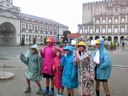 スペイン村で活動開始です。雨が降っていますが、レインコートもあるので大丈夫です。