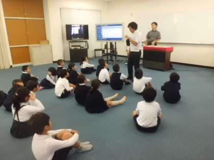10月26日(木)3時限目、1年2組で学級活動として、食育も含め、英語学習を行いました。栄養教諭、担任と二人での授業で子どもたちは興味をもって、意欲的に授業を受けていました。