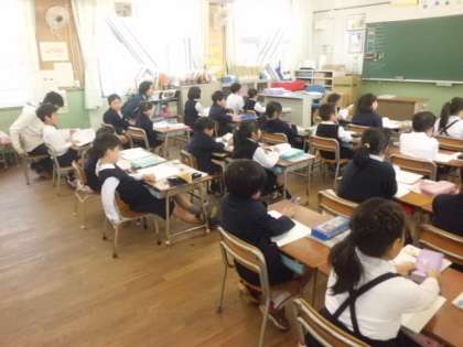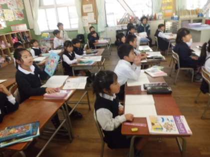 11月1日(水)留学生の2回目の来校となりました。今日4時限目は子どもたちと一緒に、日本の授業を受けました。昼からは給食、清掃活動、5時限目はふれあいお別れ集会が講堂で行われます。お国の様子など教えてもらいます。