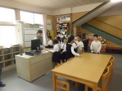 2年図書館に行って、本を借りています。蔵書はすべてバーコードによるパソコン管理です。