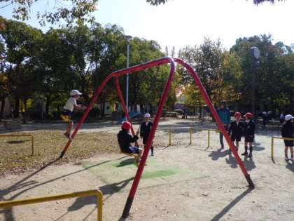 秋見つけの後は、公園の遊具で遊びました。思っていたよりも寒くなく、楽しく過ごしました。