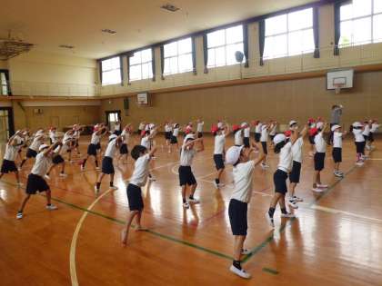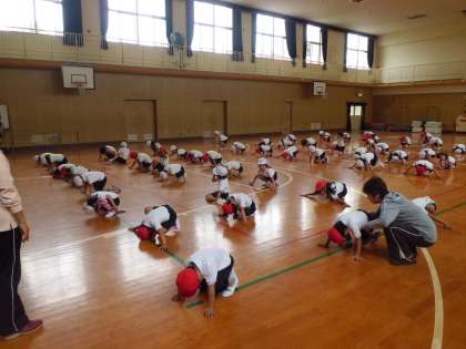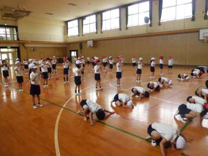 今日から6月1日(日)に開催されます運動会の練習が始まりました。1・2年生の練習の様子です。はじめは部分練習を講堂で行います。だんだんできるようになると全体を通して、運動場で練習も始まります。団体演技の練習が中心となりますが、団体競技や徒競走など練習をしていきます。