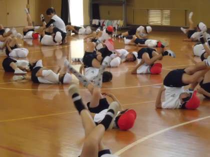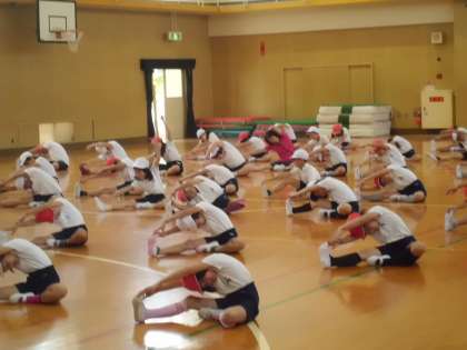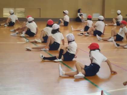 今日は、3・4年生の練習の様子を紹介します。けがをしないように、ストレッチ体操をしっかりと行いました。体がほぐれてから、リズム感あふれる団体演技の練習が始まりました。隊形もどんどん変化していきます。本番での演技が楽しみです。