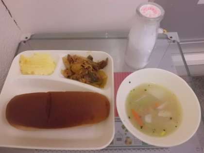 12月5日の給食は豚肉のケチャップソテー、コーンスープ、焼きプリン、パン、牛乳です。豚肉は子どもの好きなケチャップ味でおいしかったです。プリンはふんわりとできあがっています。プリンの上にかかっているカラメルソースは砂糖と水を合わせ、こい茶色になるまで煮詰めて作ります。砂糖をこがした香ばしい香りとほのかな苦みが特徴です。
