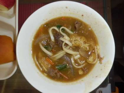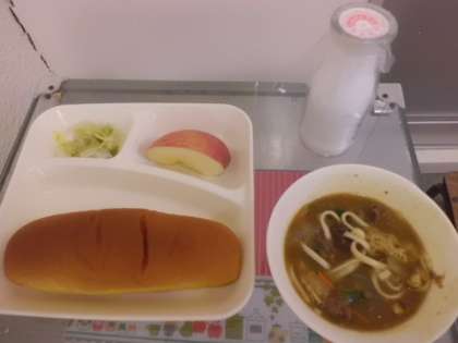 12月7日(木)の給食は、カレーうどん、はくさいの甘酢あえ、りんご、パン、牛乳です。うどんは、奈良時代に中国から伝わったお菓子「こんとん」が始まりだと言われています。「こんとん」は小麦粉の皮にあんを包んで作った団子のようなものです。やがて、「こんとん」を温かい汁に入れて食べるようになり、「温飩」(おんどん)と呼ばれました。その後、細長く切って食べるようになり、「切麦」とも呼ばれました。「温飩」(おんどん)が「饂飩」(うんどん)になって、室町時代に「うどん」と呼ばれるようになりました。今日のカレーうどんは甘口で子どもにも食べやすいメニューとなっていました。